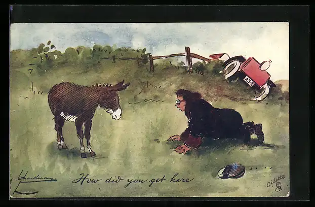 AK Junger Mann baut einen Auto - Unfall und findet ein Esel auf dem Feld