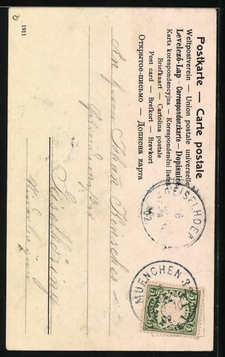 alte Ansichtskarte, gelaufen, Bugspur li. unten, guter Zustand