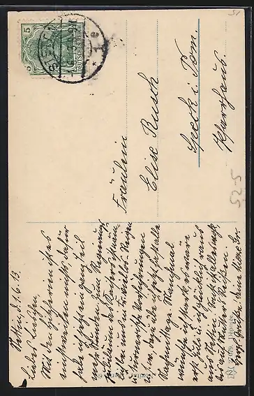 alte Ansichtskarte, gelaufen 1913, Eckknick li. oben, guter Zustand