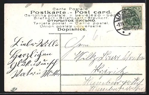 alte Ansichtskarte, gelaufen 1914, guter Zustand