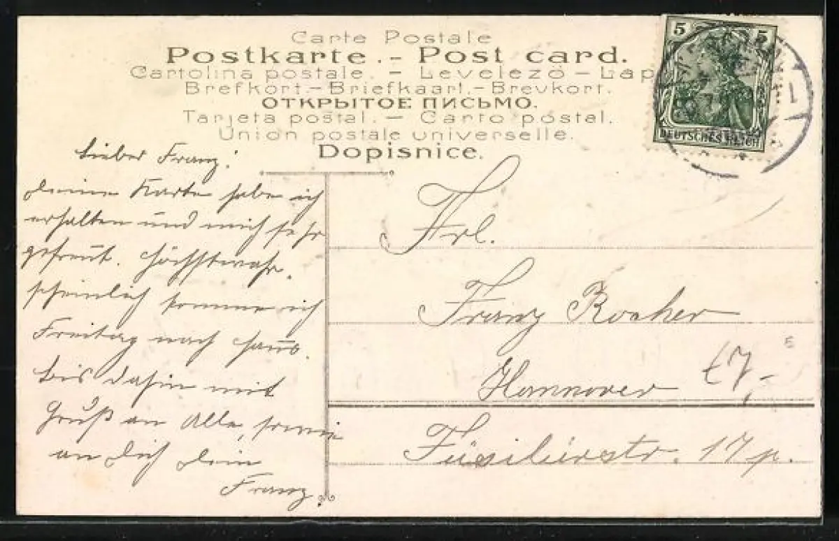 alte Ansichtskarte, gelaufen 1907, guter Zustand
