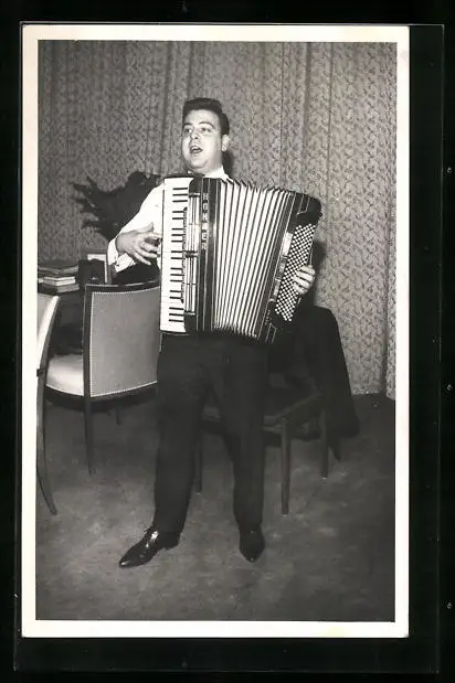 AK Junger Musiker singt zu seinem eigenen Akkordeonspiel