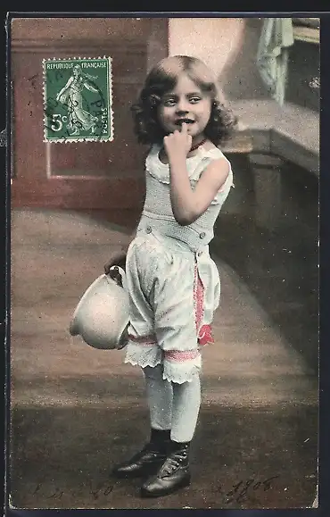 AK Junges Mädchen mit dem Nachttopf in der Hand