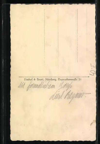 Personenbezogene Daten auf der Rückseite der Karte wurden durch blauen Textmarker unkenntlich gemacht. Die blauen Stellen sind auf die Vorderseite durchgeweicht und wirken sich negativ auf das Postkartenfoto aus