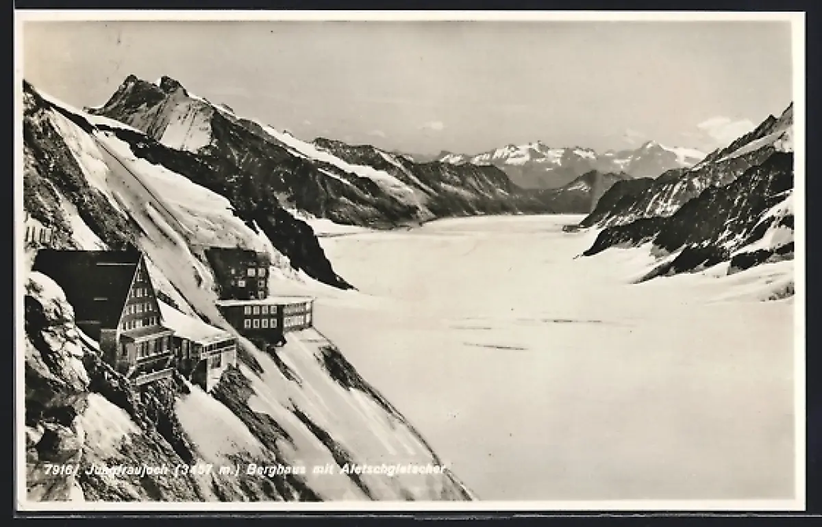 AK Jungfraujoch, Berghaus mit Aletschgletscher