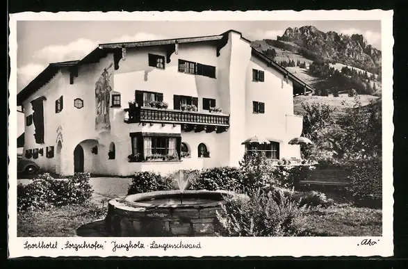 AK Jungholz-Langenschwand, Sporthotel Sorgschrofen G. Doser mit Springbrunnen