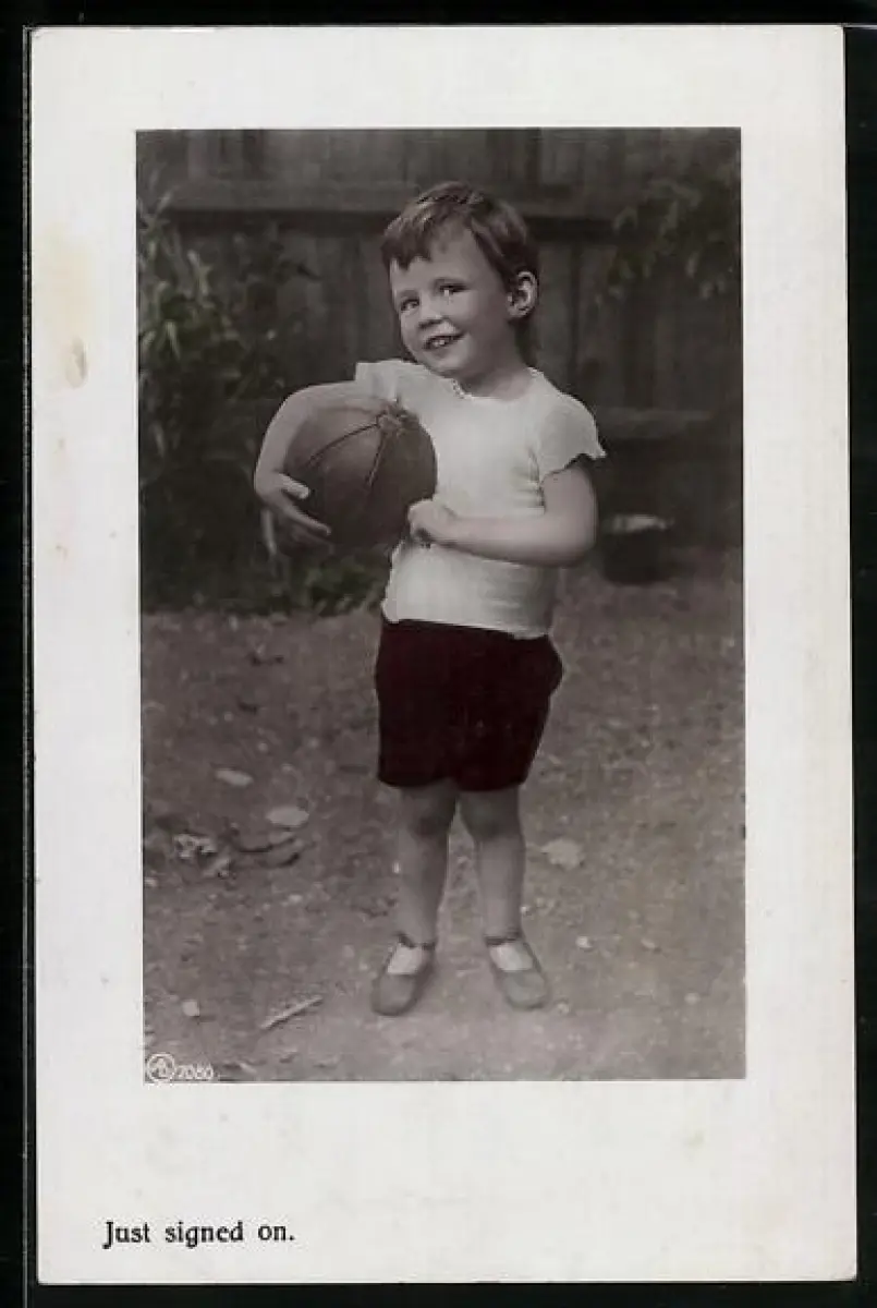 AK Just signed on, Junge hält einen Fussball