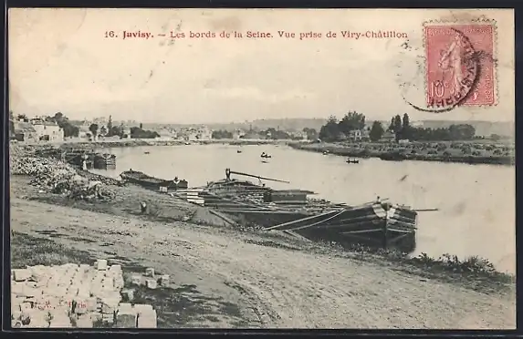 AK Juvisy, Les bords de la Seine. Vue prise de Viry-Châtillon