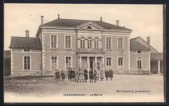 AK Juzennecourt, La Mairie avec groupe d`enfants devant le bâtiment