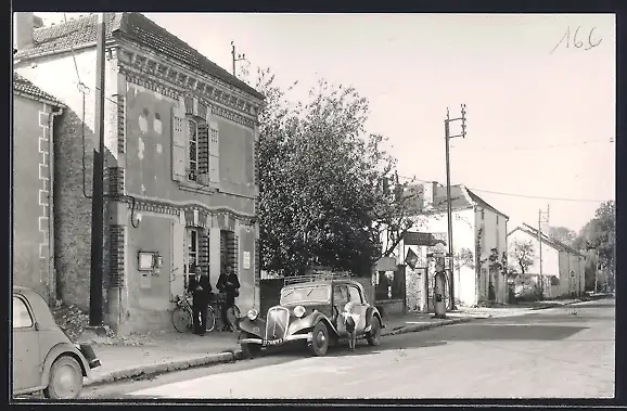 AK Juzennecourt, Rue avec voitures anciennes et cyclistes devant une maison