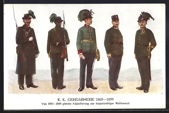 AK K. K. Gendarmerie in den Uniformen von 1869-1899