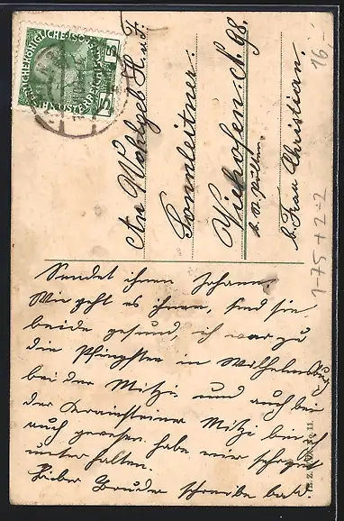 alte Ansichtskarte, gelaufen 1909, Druckspuren in der oberen Hälfte, guter Zustand
