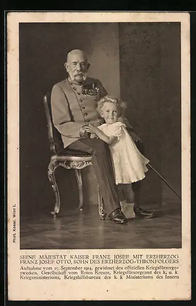 AK Kaiser Franz Josef I. von Österreich in Uniform mit Erzherzog Franz Josef Otto, Rotes Kreuz