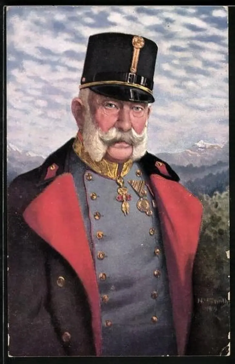 AK Kaiser Franz Josef I. von Österreich in Uniform mit Mütze und Orden