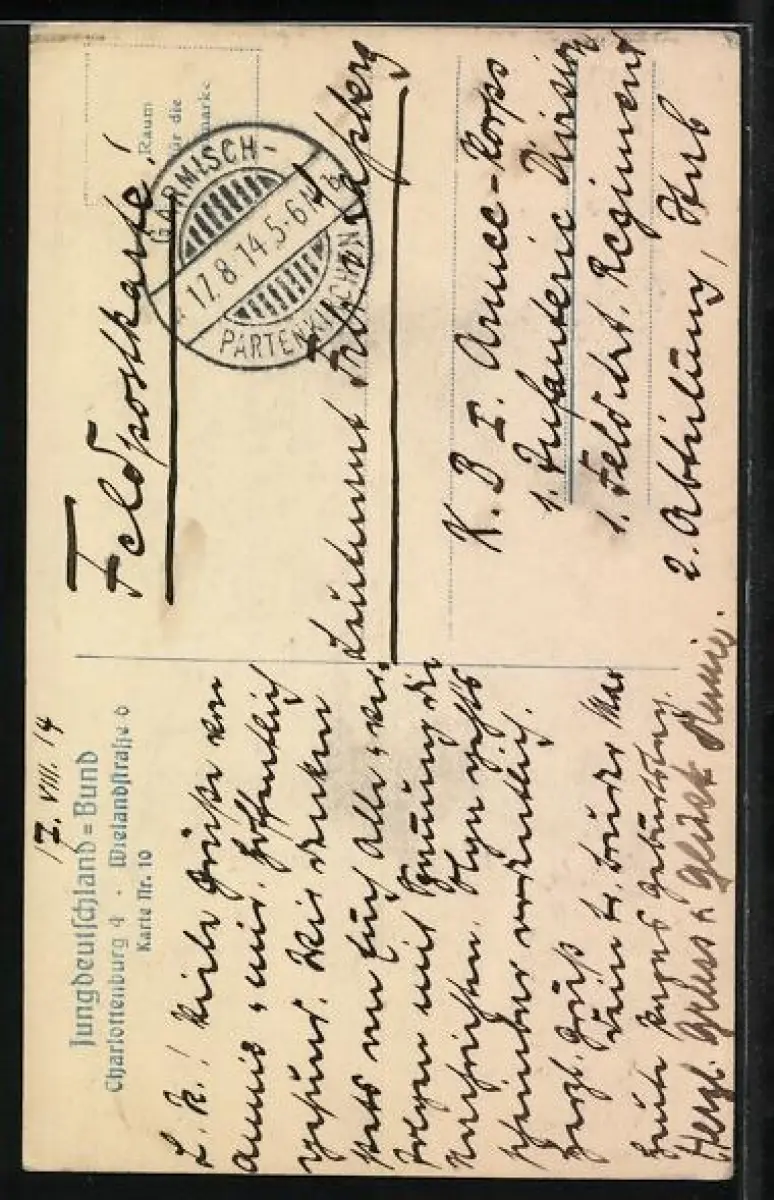 gelaufen 1914, Eckknick li. unten, guter Zustand