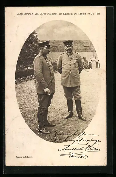 AK Kaiser Wilhelm II. in Uniform mit Orden nebst Generalfeldmarschall Paul von Hindenburg in Uniform mit Zigarette 1915