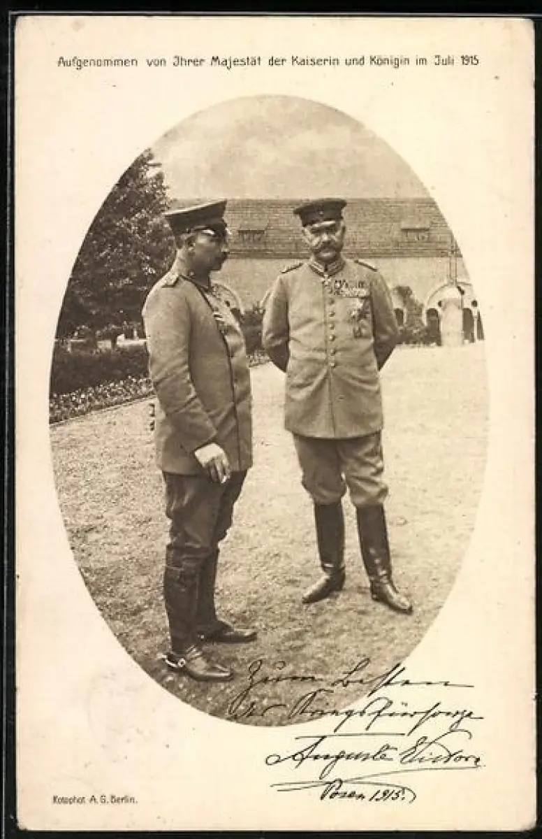 AK Kaiser Wilhelm II. in Uniform mit Orden posiert nebst Generalfeldmarschall Paul v.Hindenburg mit Zigarette in Uniform