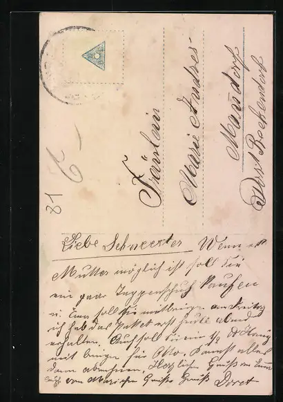 alte Ansichtskarte, gelaufen, Briefmarke entfernt, guter Zustand