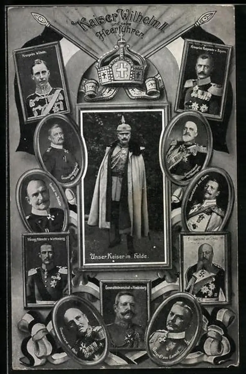 AK Kaiser Wilhelm II. und seine Heerführer, von Einem, von Tirpitz, von Bülow, von Emmich
