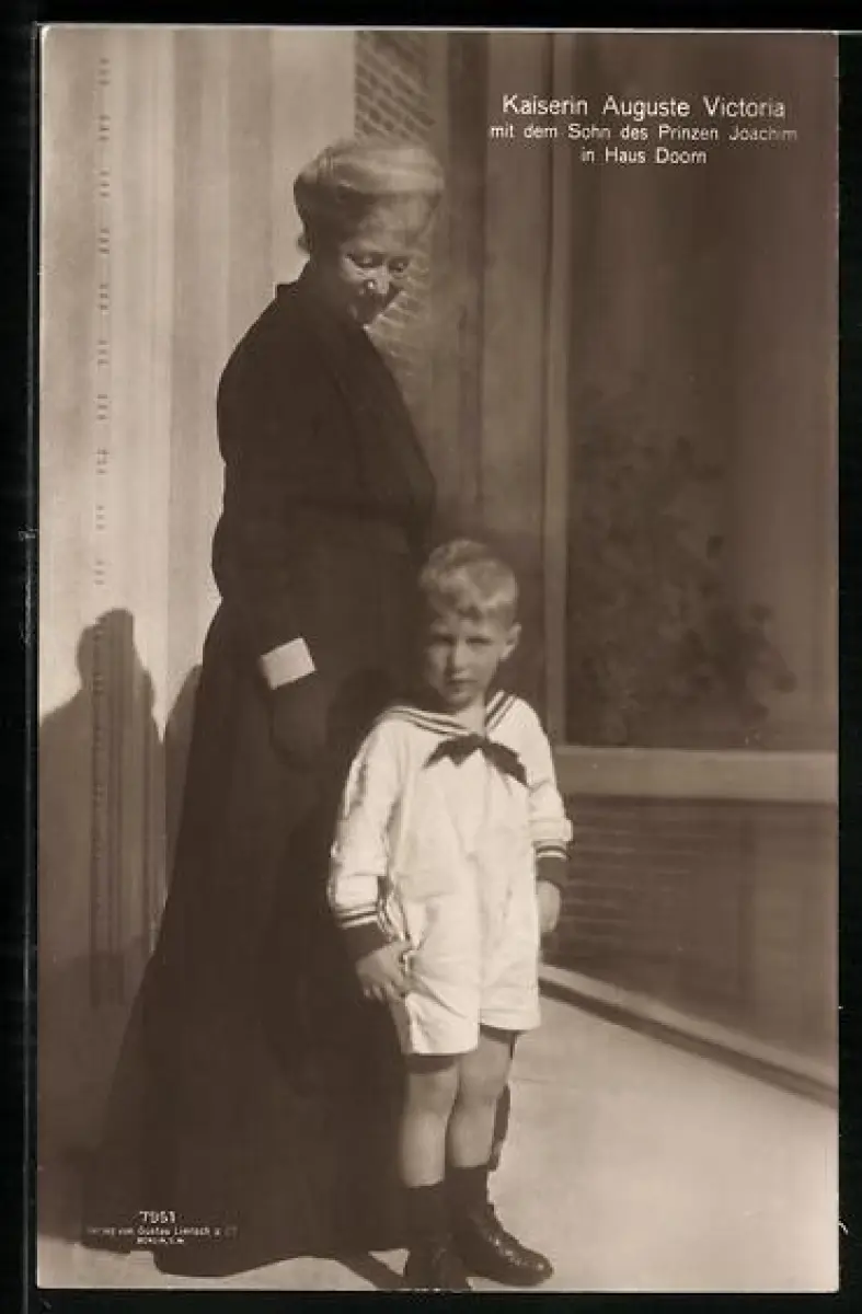 AK Kaiserin Auguste Victoria Königin von Preussen, gemeinsam mit dem Sohn des Prinzen Joachim in haus Doorn