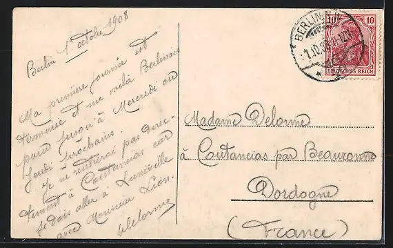 alte Ansichtskarte, gelaufen 1908, Eckknick li. unten, guter Zustand
