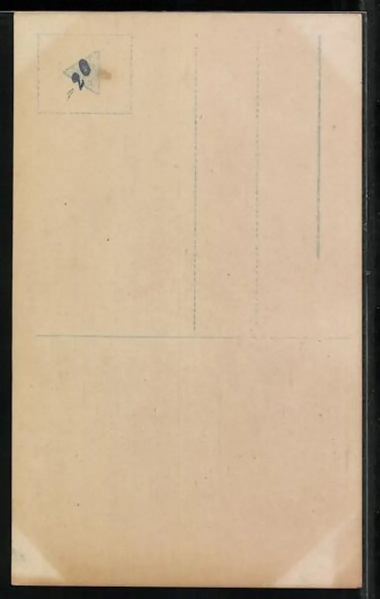 Personenbezogene Daten auf der Rückseite der Karte wurden durch blauen Textmarker unkenntlich gemacht. Die blauen Stellen sind auf die Vorderseite durchgeweicht und wirken sich negativ auf das Postkartenfoto aus