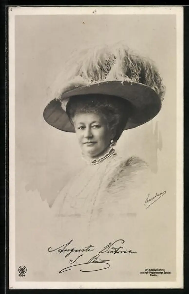 AK Kaiserin Auguste Victoria von Preussen, Portrait im Kleid mit grossem Hut