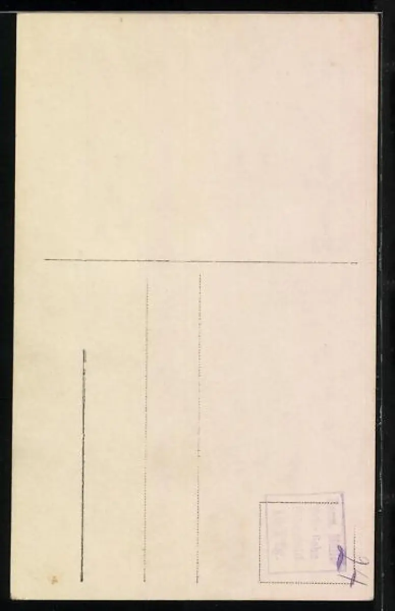 Personenbezogene Daten auf der Rückseite der Karte wurden durch blauen Textmarker unkenntlich gemacht. Die blauen Stellen sind auf die Vorderseite durchgeweicht und wirken sich negativ auf das Postkartenfoto aus