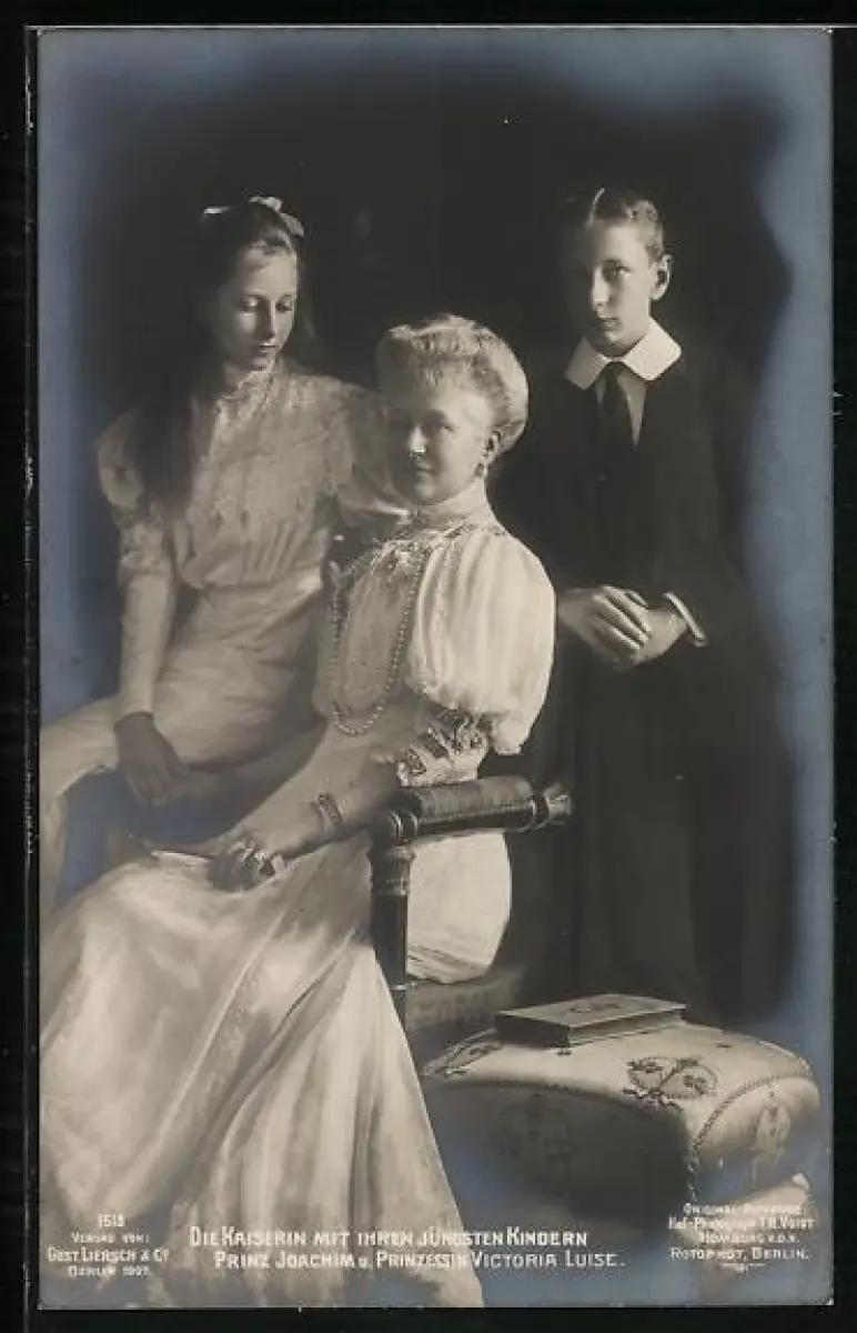 AK Kaiserin Auguste Victoria von Preussen mit ihren Kinder, Prinz Joachim u. Prinzessin Victoria Luise