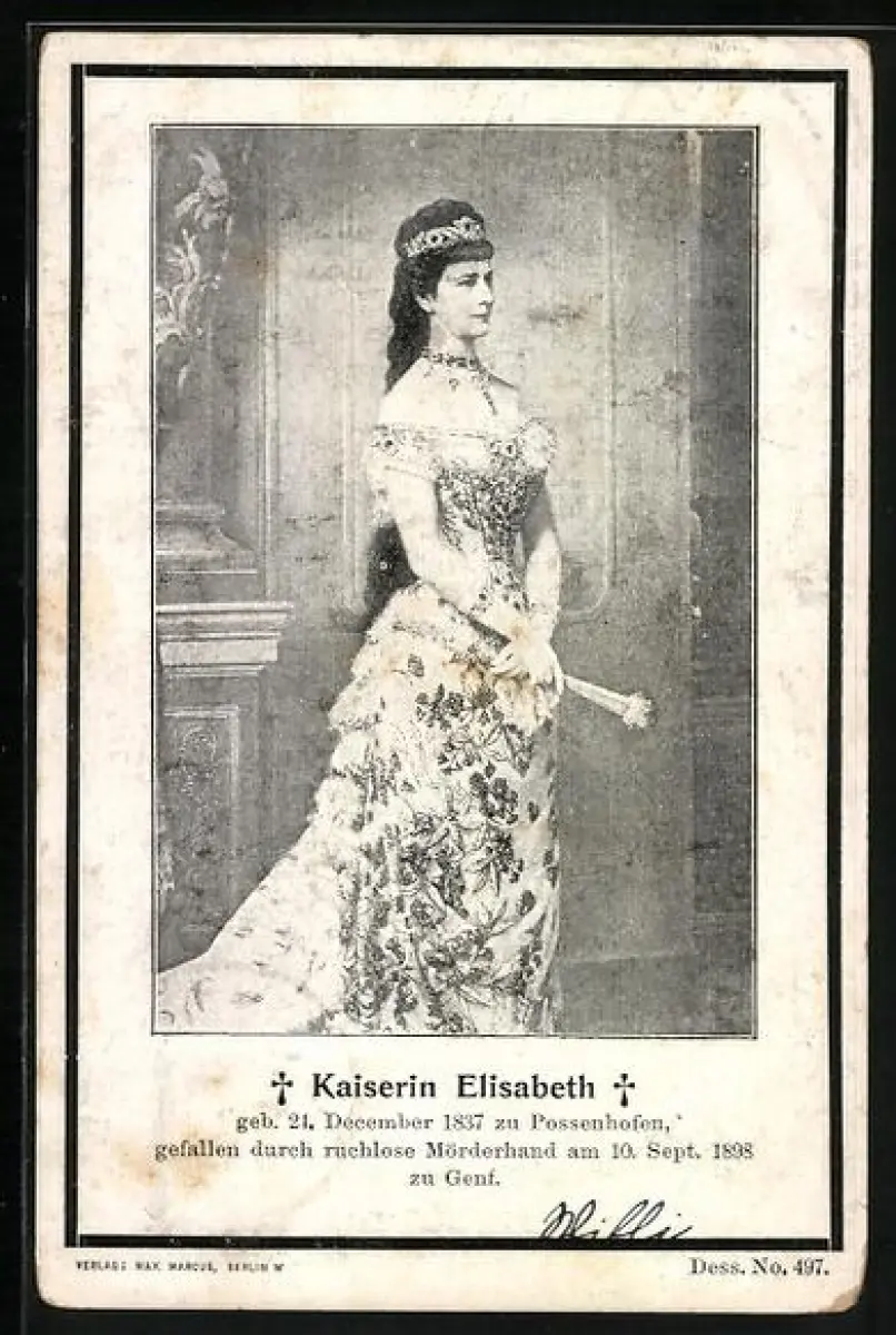 AK Kaiserin Elisabeth, Portrait in elegantem Kleid, Trauerrand