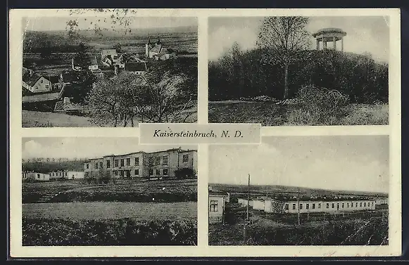 AK Kaisersteinbruch, Partien im Lager, Gloriette, Ortsansicht aus der Vogelschau