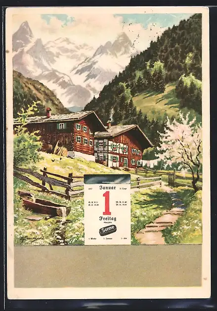 AK Kalender 1. Januar 1937, Freitag, Neujahr, Sonne-Briketts heizen gut - halten Glut!