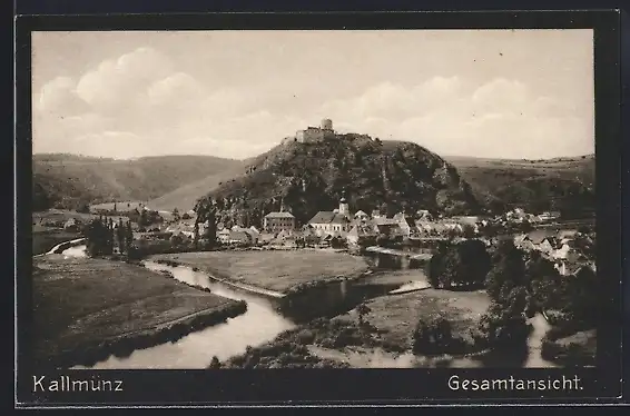 AK Kallmünz, Gesamtansicht mit Gewässer und Burg