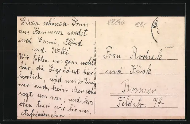 alte Ansichtskarte, gelaufen, Briefmarke entfernt, guter Zustand