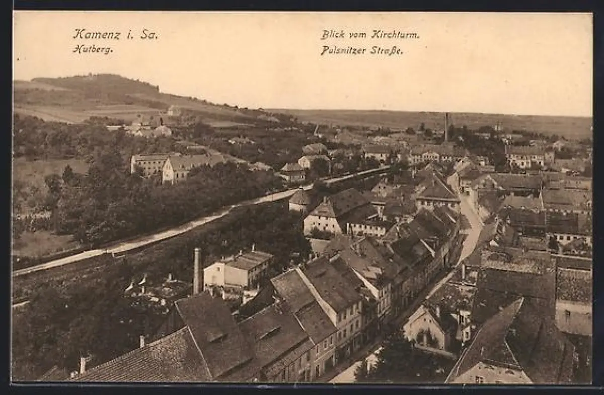 AK Kamenz i. Sa., Hutberg, Blick vom Kirchturm, Pulsnitzer Strasse