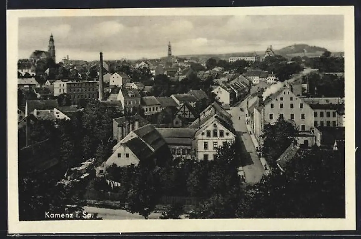 AK Kamenz i. Sa., Ortsansicht mit Strassenpartie