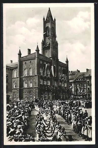 AK Kamenz i. Sa., Rathaus mit Forstfestauszug
