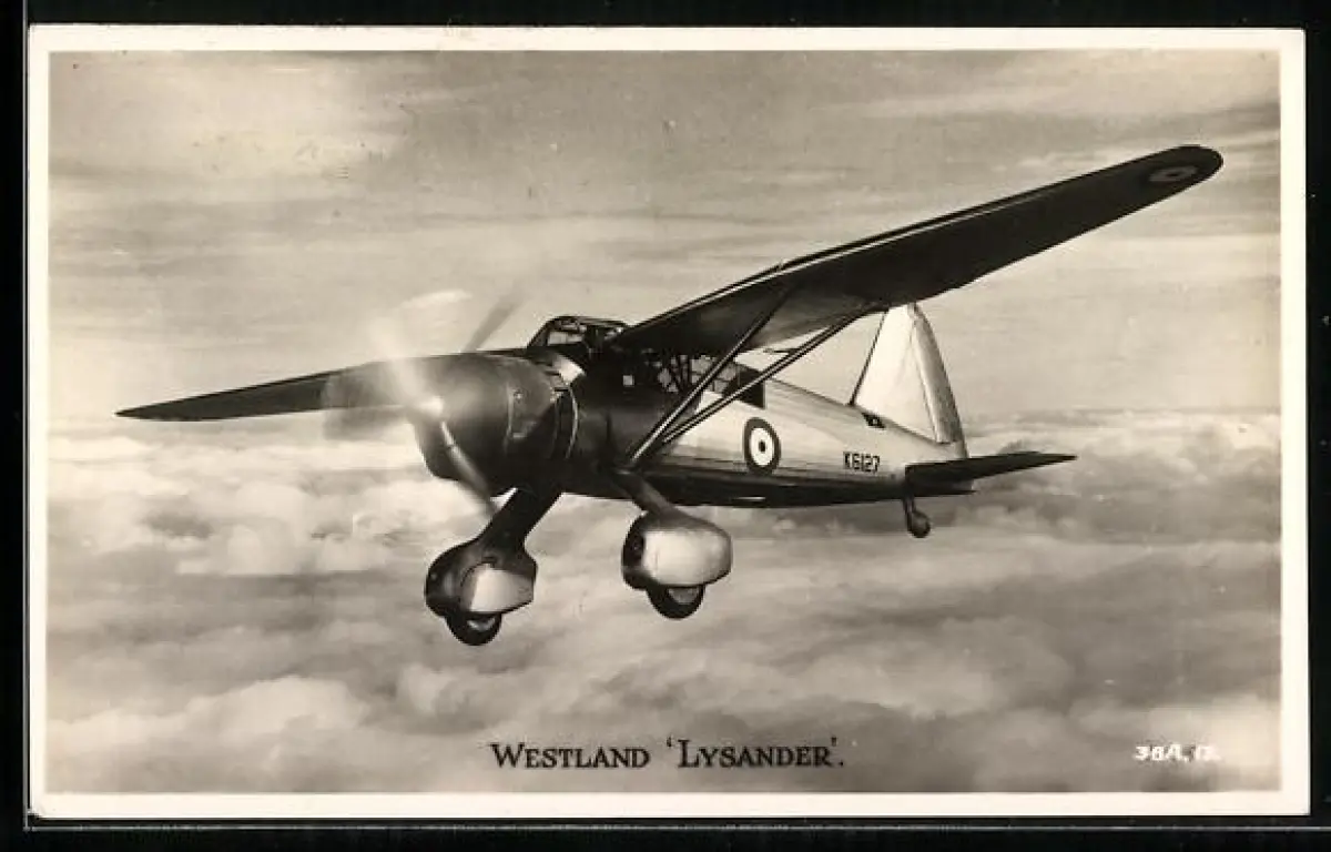 AK Kampfflugzeug vom Typ Westland Lysander über den Wolken