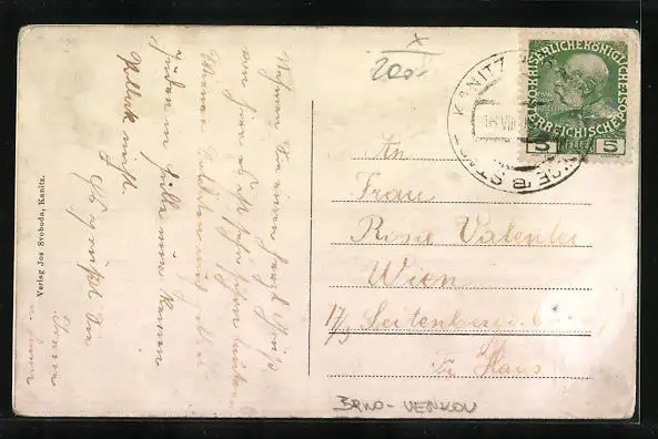 alte Ansichtskarte, gelaufen, Bugspur oben re., guter Zustand