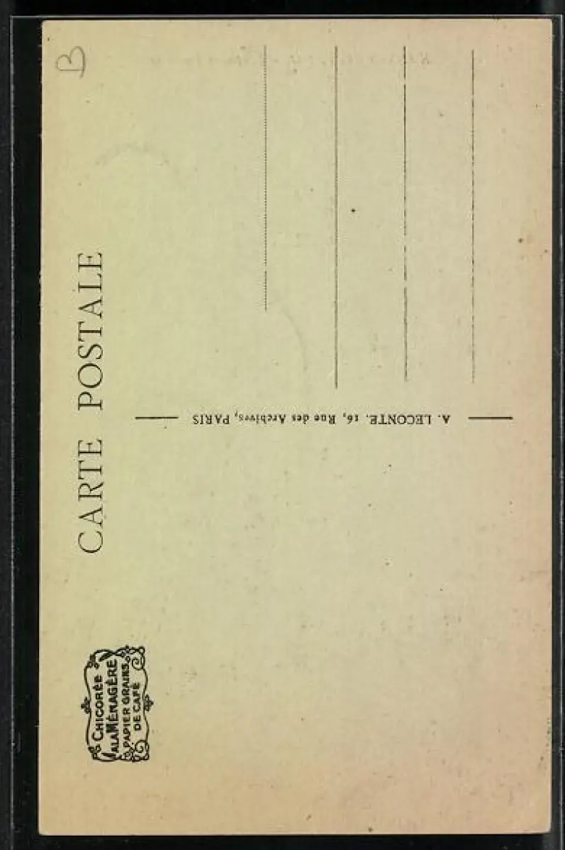 Personenbezogene Daten auf der Rückseite der Karte wurden durch blauen Textmarker unkenntlich gemacht. Die blauen Stellen sind auf die Vorderseite durchgeweicht und wirken sich negativ auf das Postkartenfoto aus