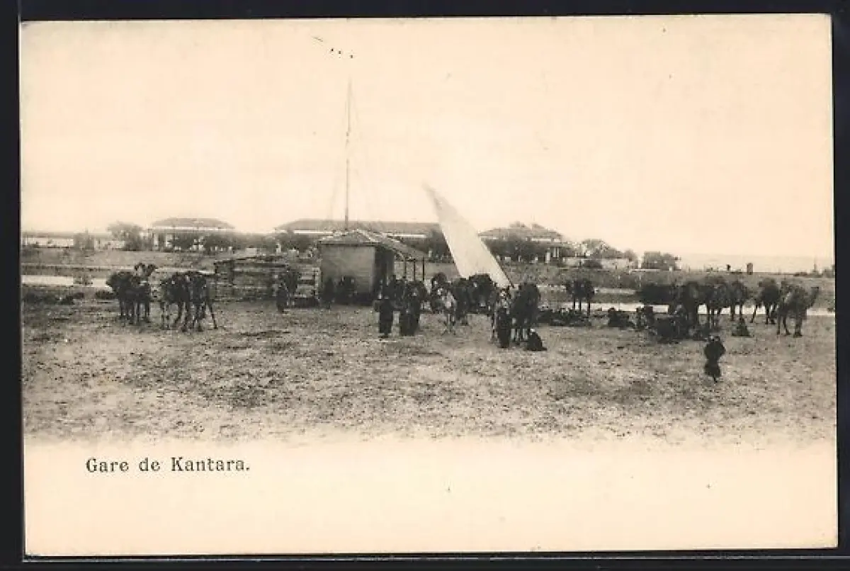 AK Kantara, La Gare, Kamele vor dem Bahnhof