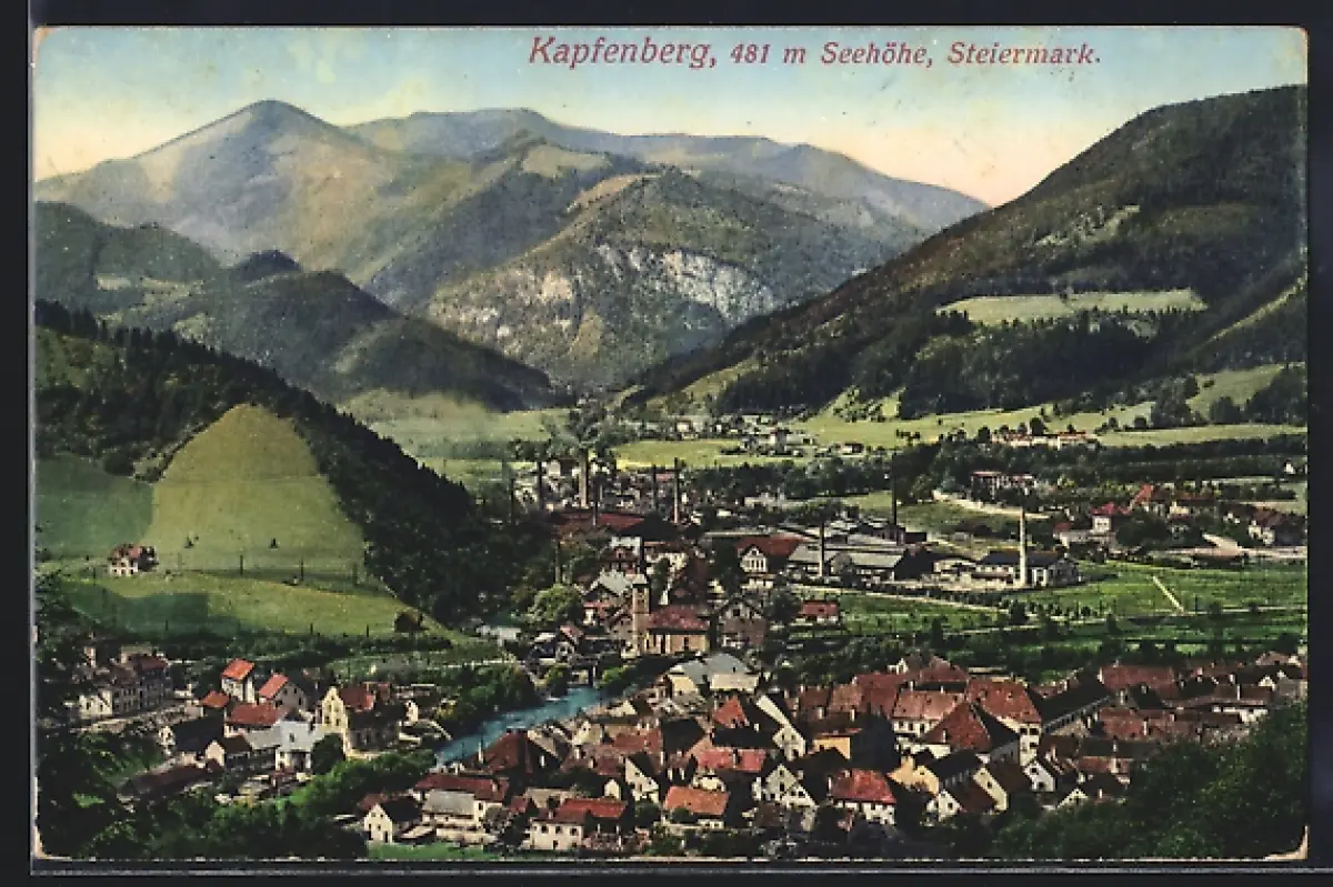 AK Kapfenberg /Steiermark, Ortsansicht mit Bergen
