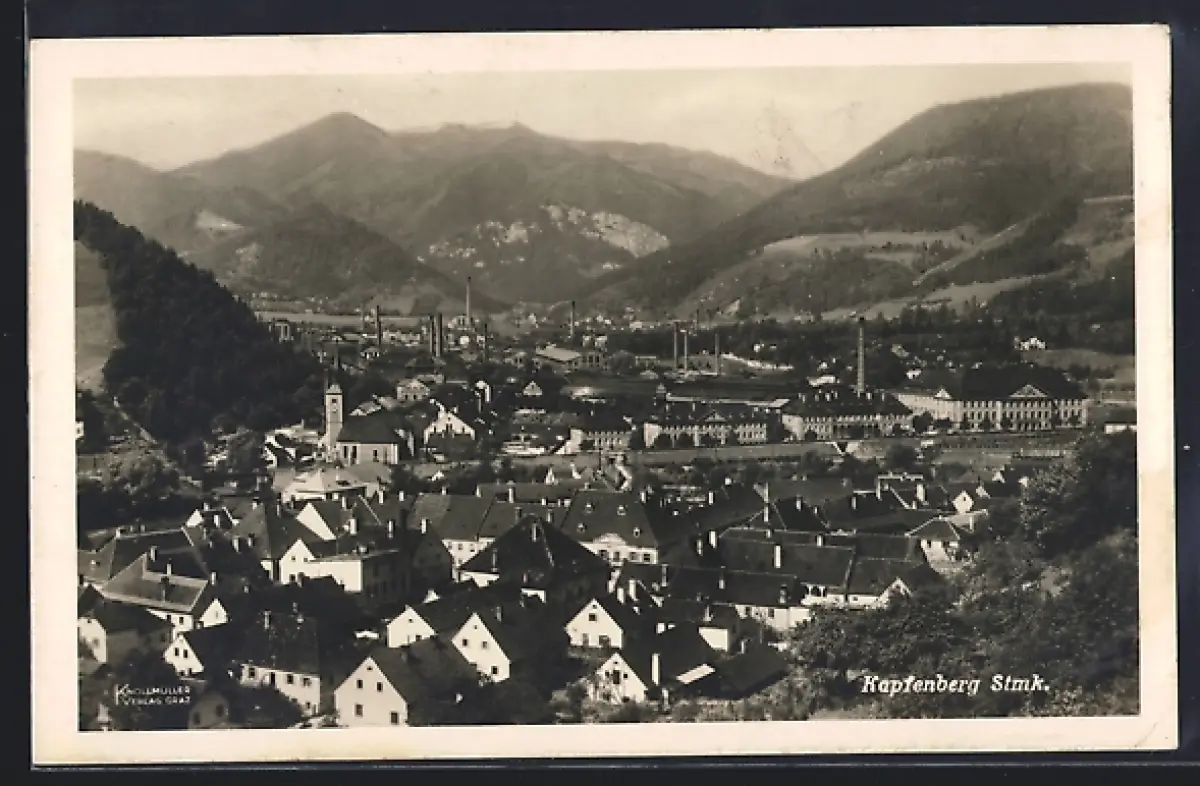 AK Kapfenberg /Stmk., Ortsansicht mit Bergpanorama