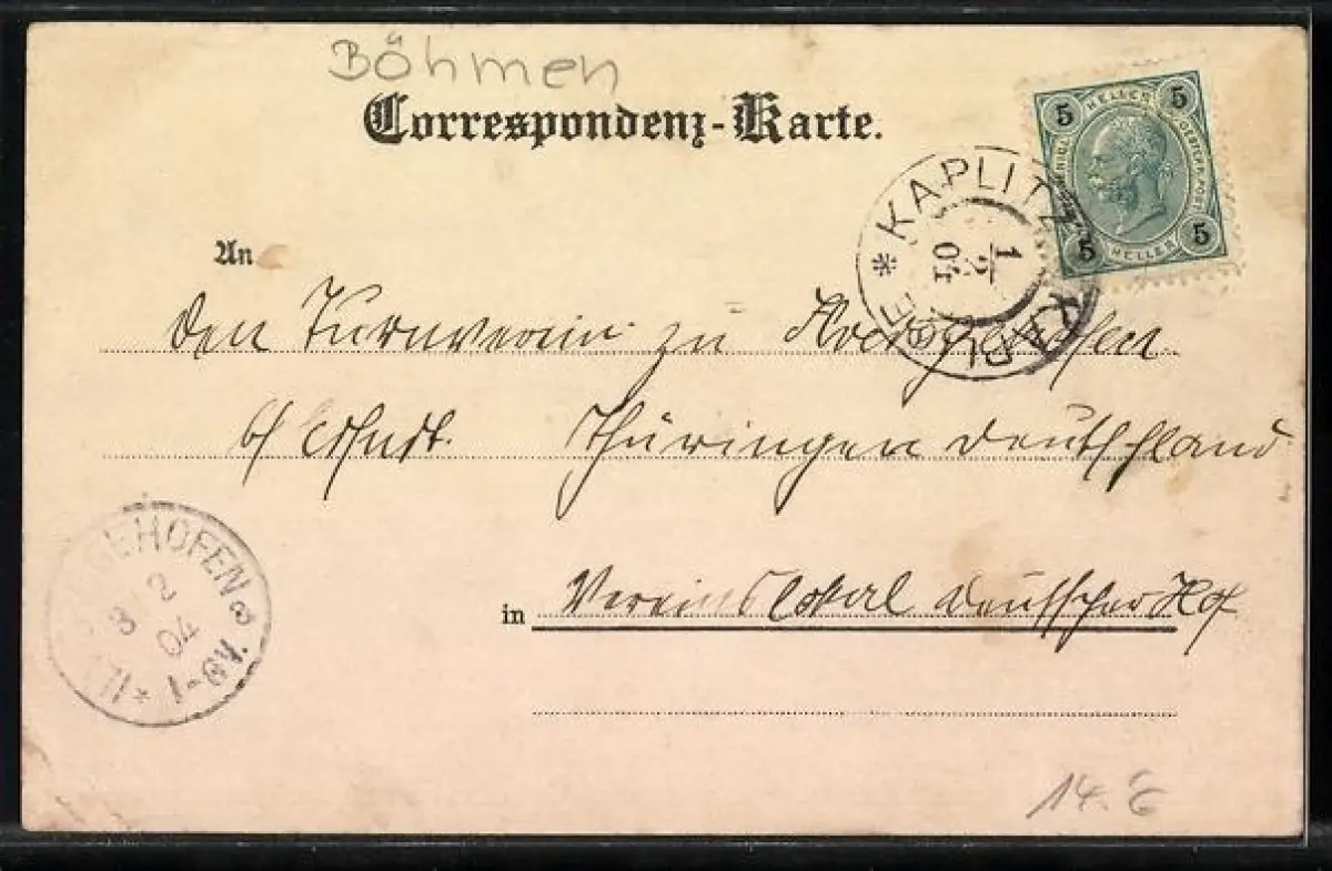 gelaufen 1904, Eckknicke re. unten, guter Zustand