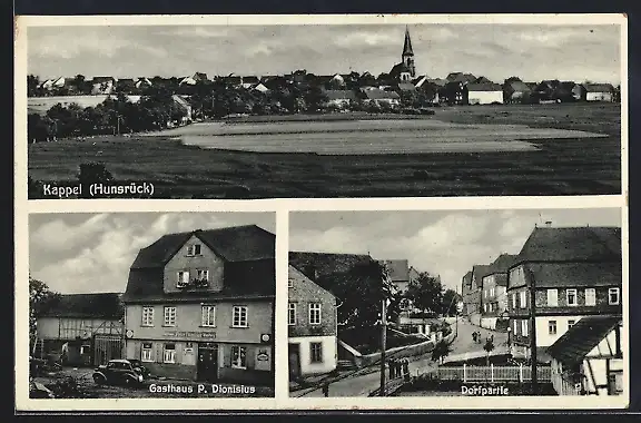 AK Kappel / Hunsrück, Gasthaus P. Dionisius, Strassenpartie im Dorf