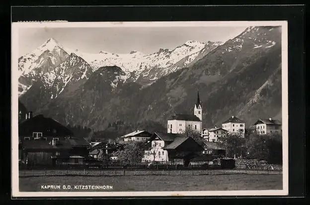 AK Kaprun, Ortspartie mit Kirche und Kitzsteinhorn
