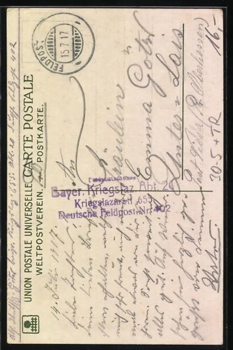 alte Ansichtskarte, gelaufen 1917 als Feldpost, guter Zustand