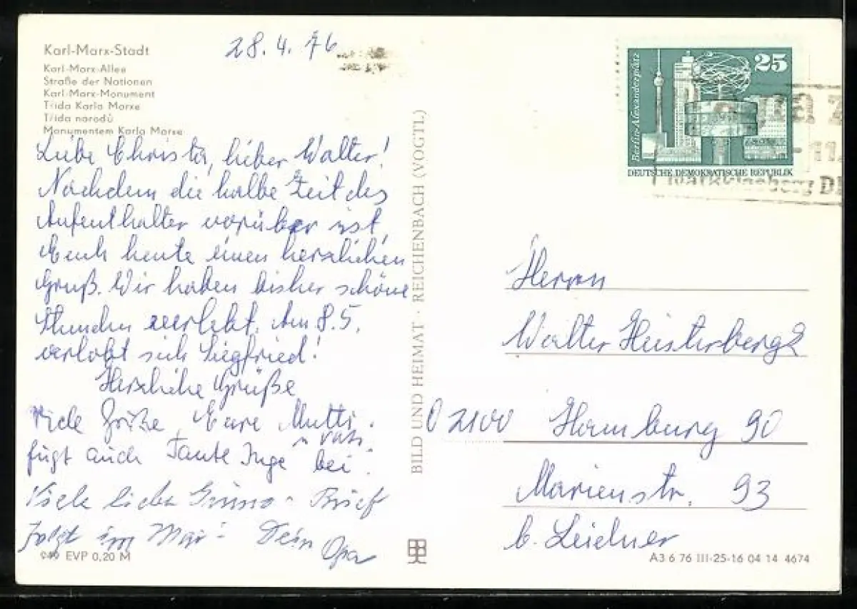 alte Ansichtskarte, gelaufen 1976, guter Zustand