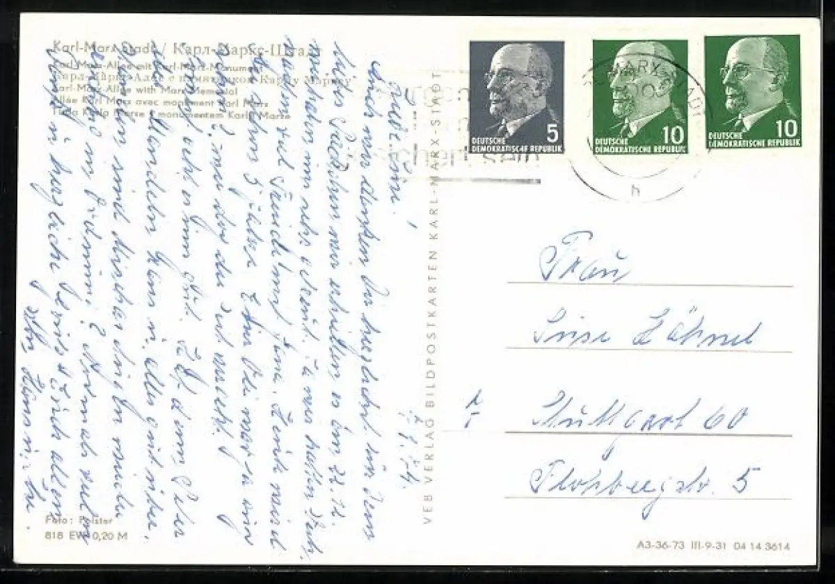 AK Karl-Marx-Stadt, Karl-Marx-Allee mit Karl-Marx-Monument