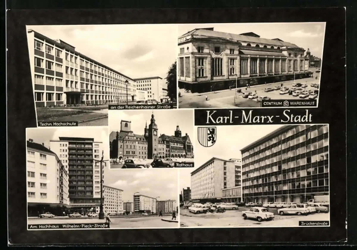 AK Karl-Marx-Stadt, Technische Hochschule an der Reichenhainer Strasse, Centrum Warenhaus, Brückenstrasse